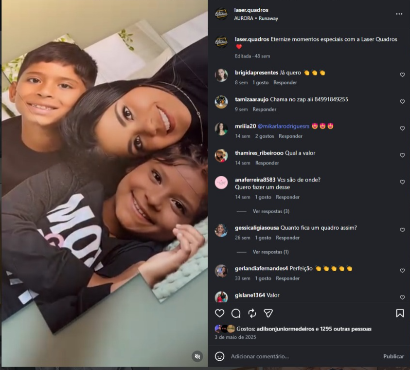 Clique neste link e veja os modelos e depoimentos de nossos cliente https://www.instagram.com/laser.quadros/